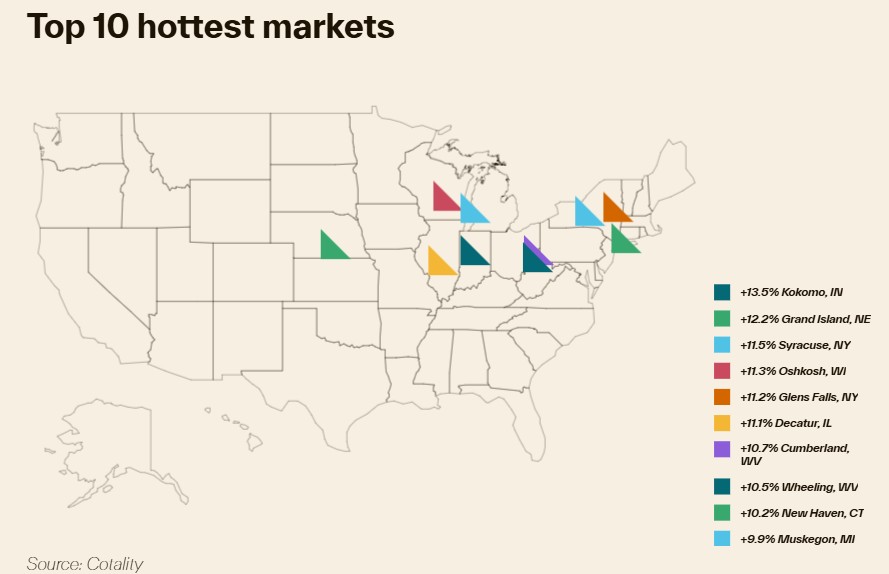 북동부와 중서부의 강한 성장세 일부 지역은 꾸준한 가격 상승을 보이고 있는데, 특히 북동부와 중서부 일부 지역이 그렇습니다.